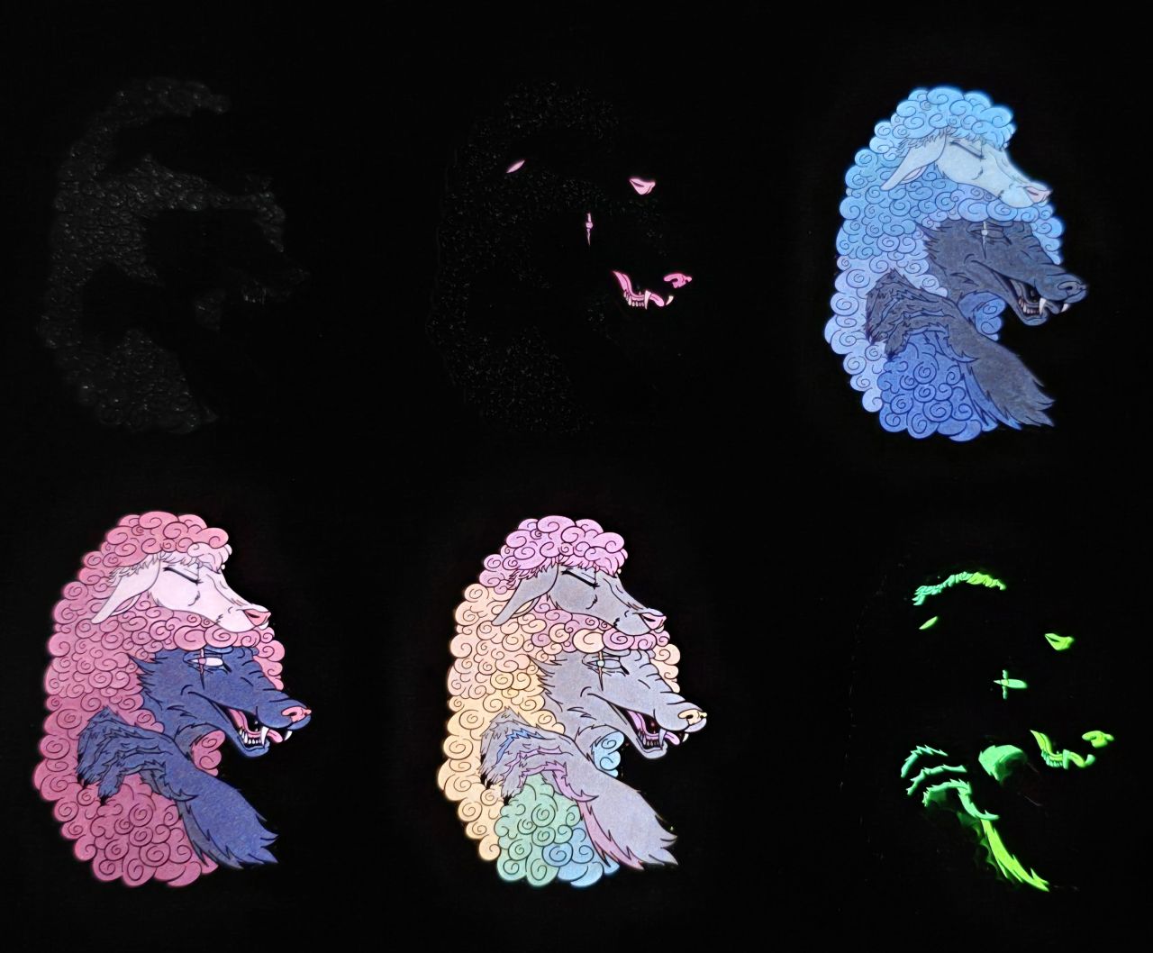Black Sheep (rainbow glitter on black, white glow on pink paint only) colored by Olivia Olds